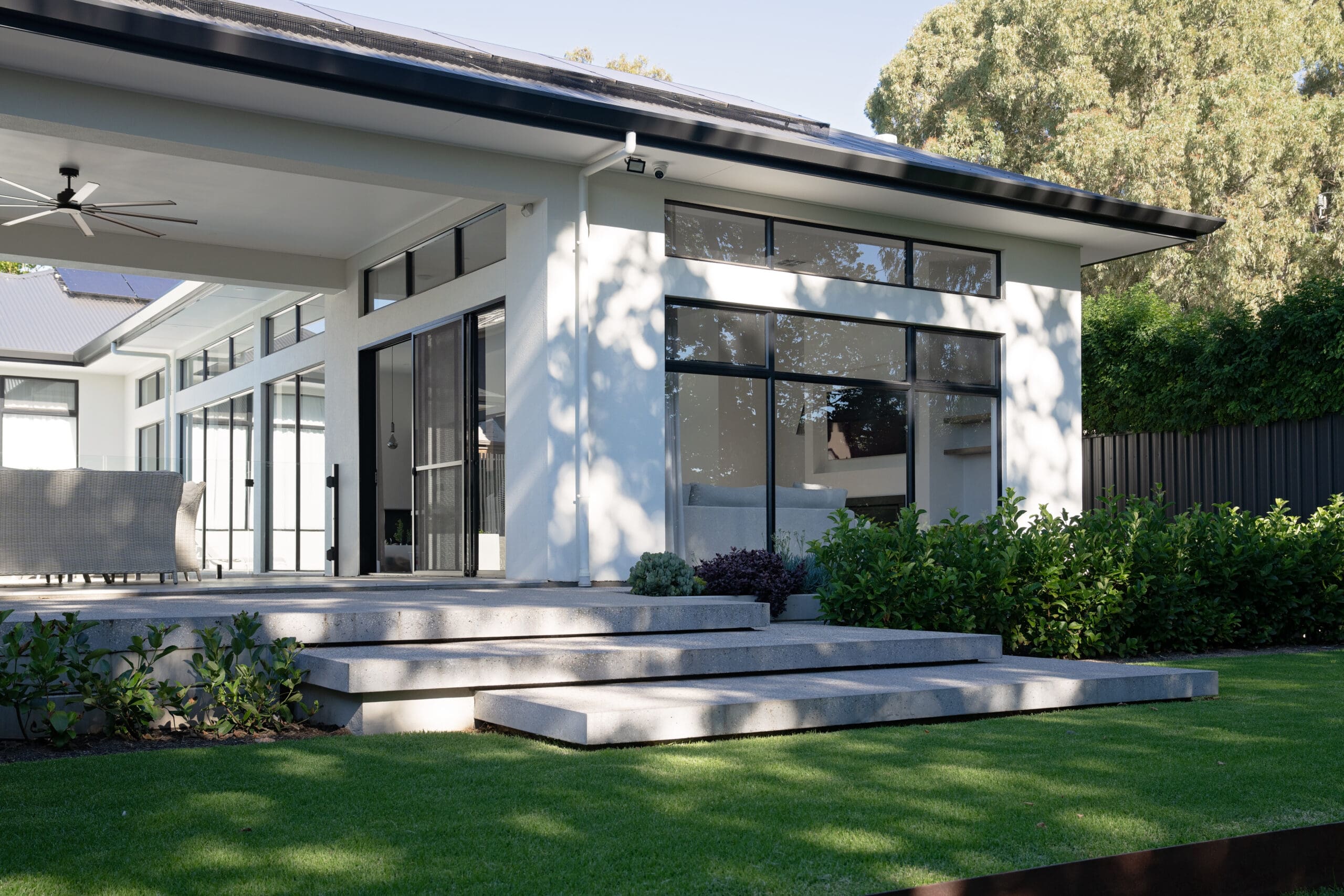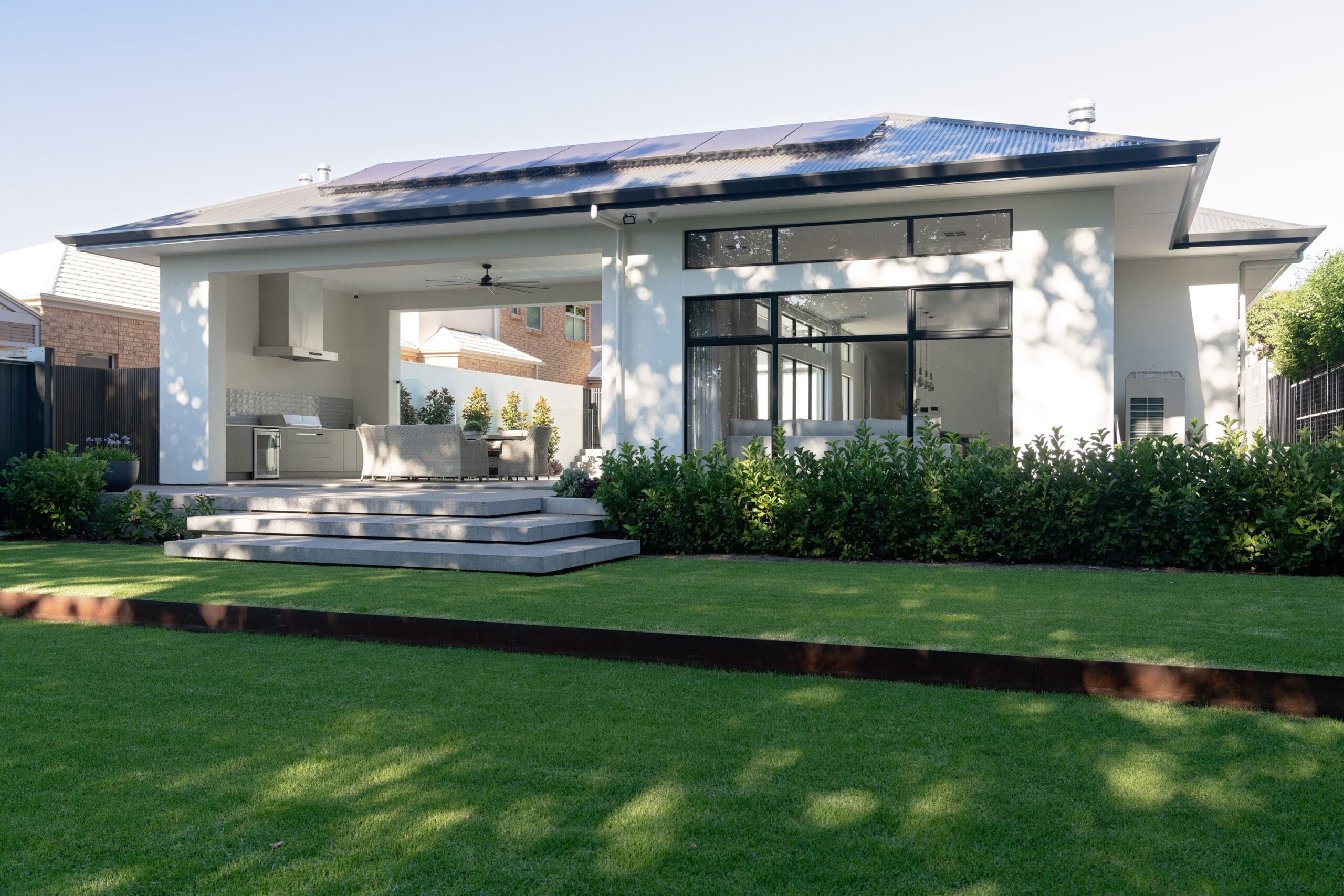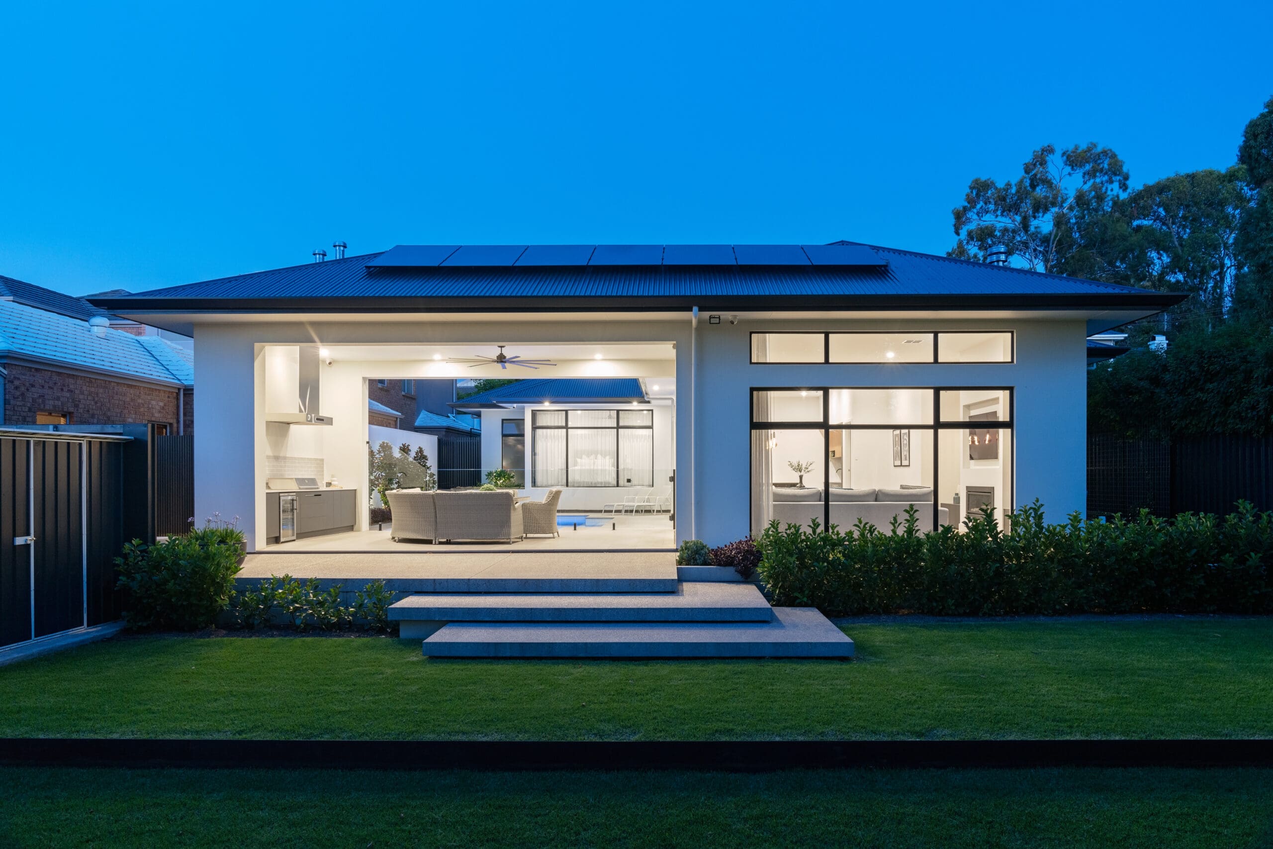 Patrick and Kathleen’s Rostrevor haven redefines indoor-outdoor living. Every detail, from the sophisticated interiors to the landscaped backyard oasis with its inviting pool, has been thoughtfully designed to seamlessly blend these spaces. This home is perfect for families, offering uninterrupted visibility that provides both a sense of security and beautiful views. The unique split-level design maintains a consistent ceiling height throughout, creating an open, connected, and flowing atmosphere.