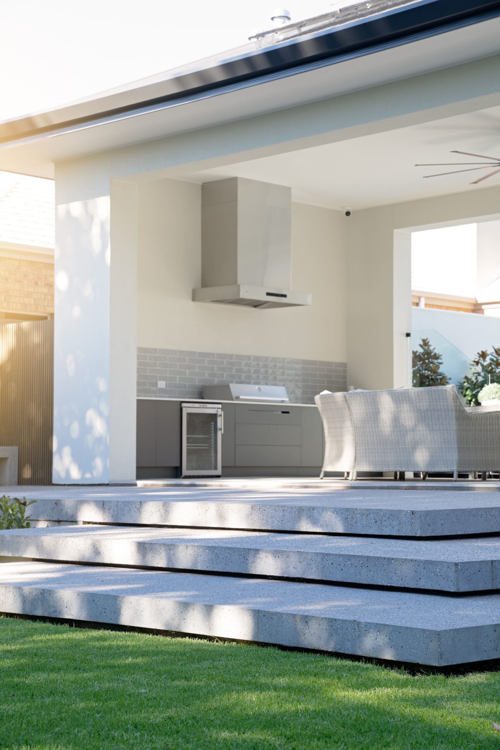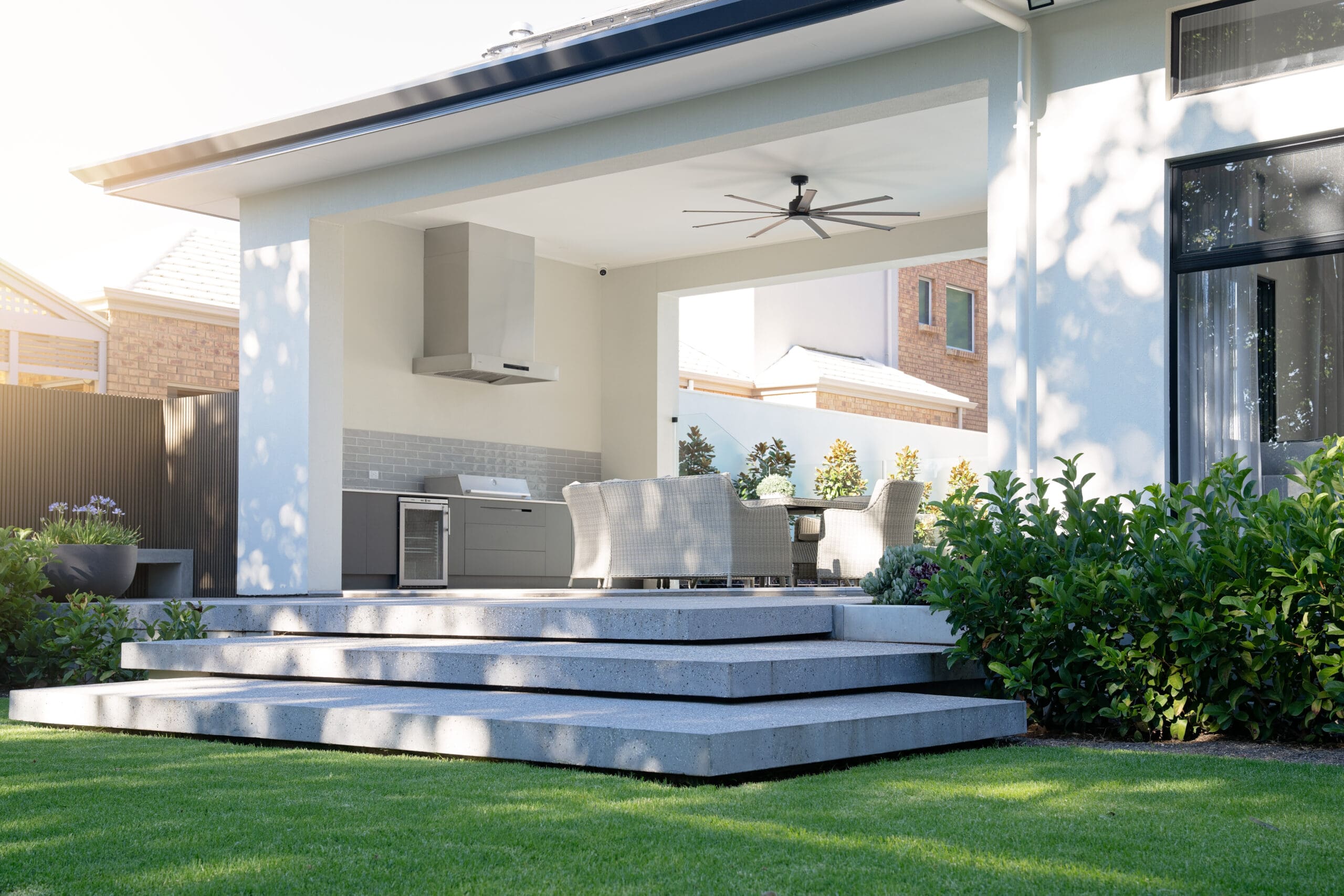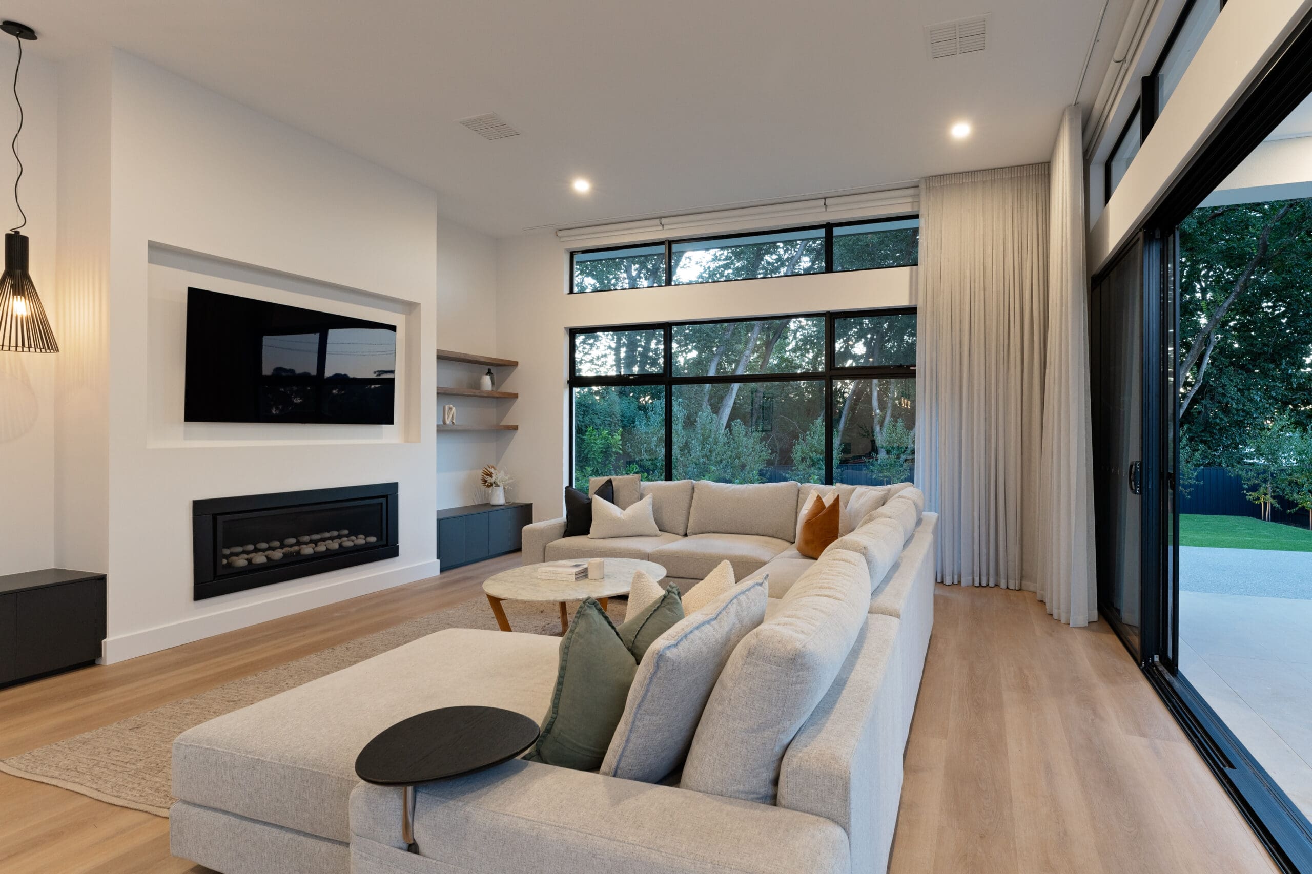 Patrick and Kathleen’s Rostrevor haven redefines indoor-outdoor living. Every detail, from the sophisticated interiors to the landscaped backyard oasis with its inviting pool, has been thoughtfully designed to seamlessly blend these spaces. This home is perfect for families, offering uninterrupted visibility that provides both a sense of security and beautiful views. The unique split-level design maintains a consistent ceiling height throughout, creating an open, connected, and flowing atmosphere.